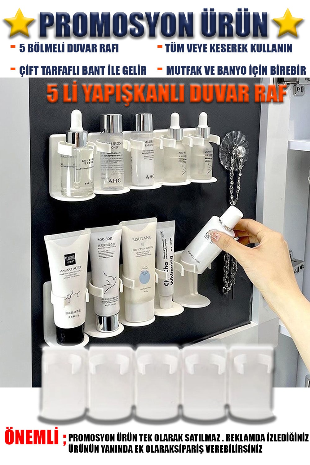 3 Adet 5 Lİ YAPIŞKANLI DUVAR RAFI -